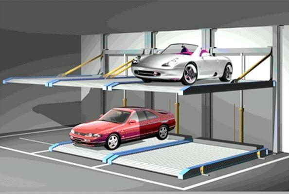 The equipment is designed with 2 levels and multi-bays. There is an empty car space for exchanging space for other cars. The bottom level cars can move horizontally, while the top level can move only vertically. When the car loading pallet reaches the ground, the car can be driven in or out easily.